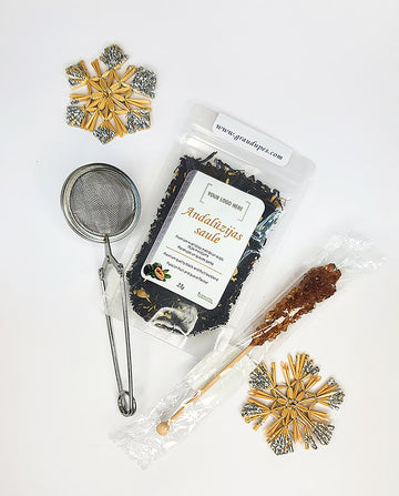 Choose any of the teas from the Graudupes range in 50g packs, with sugar sticks and a tea strainer!