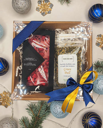 Treat your colleagues, clients or partners with chocolate made in Saldus, added to gift sets.